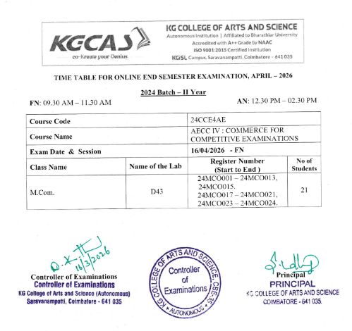 I & II year of UG & PG – Online ESE- Timetable – April 2026