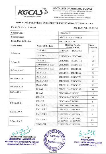 I UG & I PG – Online ESE- Timetable – November 2025